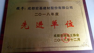 祝贺公司获得“2018年成都市混凝土行业先进单位”荣誉称号