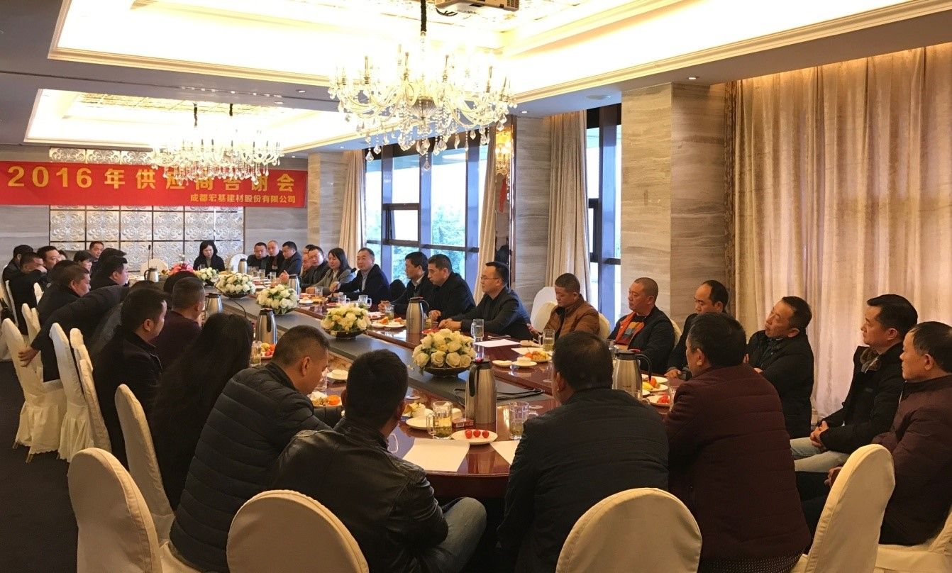 (文 物资部 龚秀萍) 2017年 2月 21日,成都宏基建材股份有限公司的年度供应商答谢会隆重举行,约六十余位供应商伙伴应邀出席了此