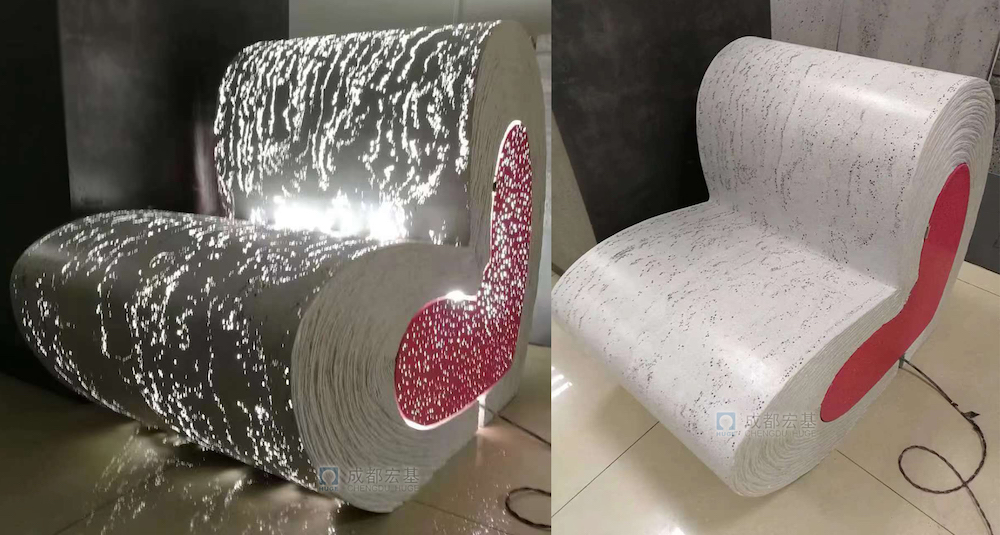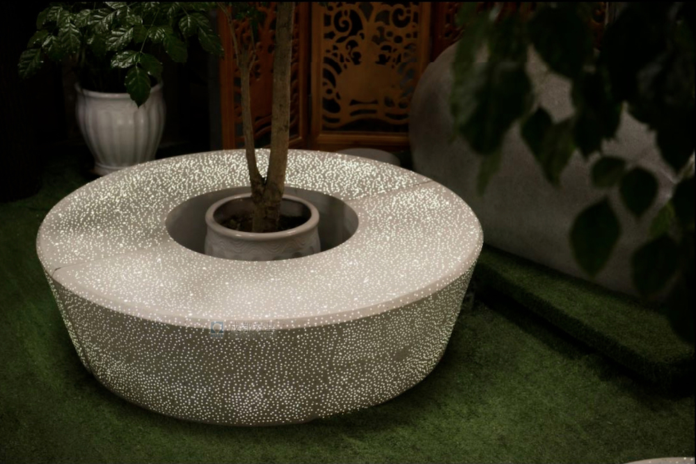 与普通透光混凝土相比,宏基透光混凝土强度高(抗压强度≥40MPa)、优异的抗裂性能(抗折强度≥8MP),丰富的造型(包括板、树池、梯步和长凳等)和多样的透光花样(流水纹、满天星和矩阵等),可完全满足设计师的需要。