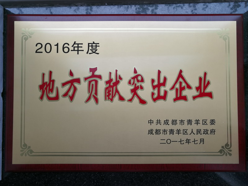 祝贺公司获“青羊区2016年度地方贡献突出企业”荣誉称号