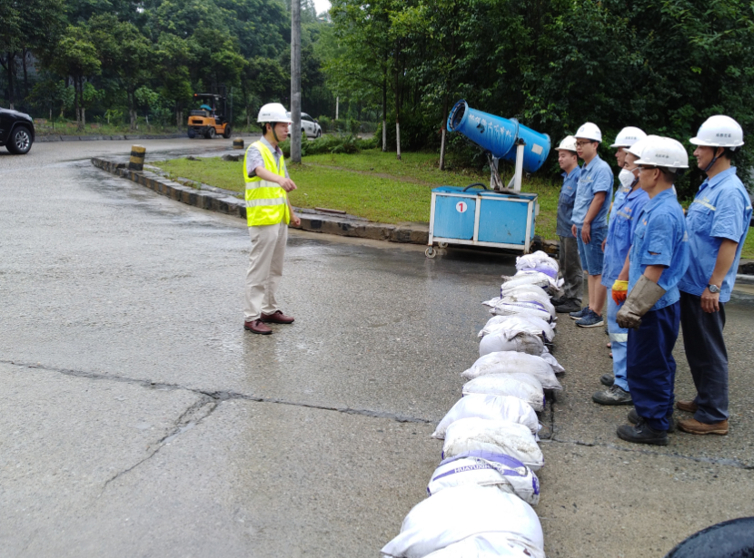 同时,雨季来临近期雨水可能会较多,场地内容易造成积水,产生安全隐患。鉴于此,分公司于2018年6月27日,组织了一次由分公司管理团队、安全员、普工班、保安班等人员参加的防洪演练。通过此次活动,增强了员工的防洪防水安全意识,明白了一旦出现紧急情况该如何有效处理。