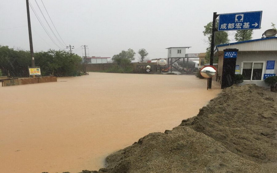 天府新区分公司地处低洼地带,周边嘉城搅拌站、砂石厂、东山大道等地势均高于我司,周边地铁施工及渣土倒场将原有排水系完全破坏,致使长时间系统性强降雨后积水成河,所有积水向站内奔涌,造成严重内涝。