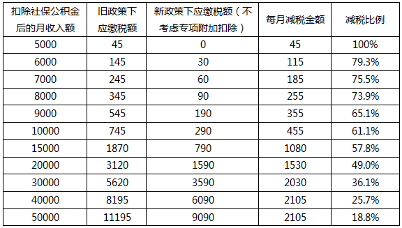 根据测算,不同收入人群的减税情况如下表所示:(单位:元)