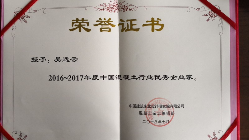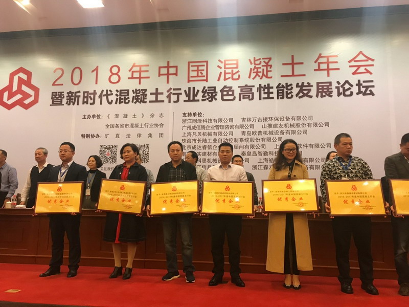 2018年10月22日,由中国混凝土协会举办年会——暨新时代混凝土行业绿色高性能发展论坛在浙江杭州召开,公司董事长吴逸云、生产副总监董誉、综合管理部副经理王洵应邀参加论坛。成都宏基建材股份有限公司获得2016-2017年度中国混凝土行业优秀企业荣誉称号,董事长吴逸云被评为2016-2017年度中国混凝土行业优秀企业家。