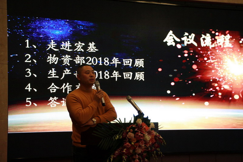 会议首先以“走进宏基”为主题,通过“2018宏基大事记”的形式,向合作伙伴介绍了2018年宏基公司重点工作和取得的部份成绩,物资管理部和生产管理部负责人也向合作伙伴介绍了相应系统的运行情况,籍此向合作伙伴更深入全面地展示宏基,同时传递宏基的价值观和企业文化。