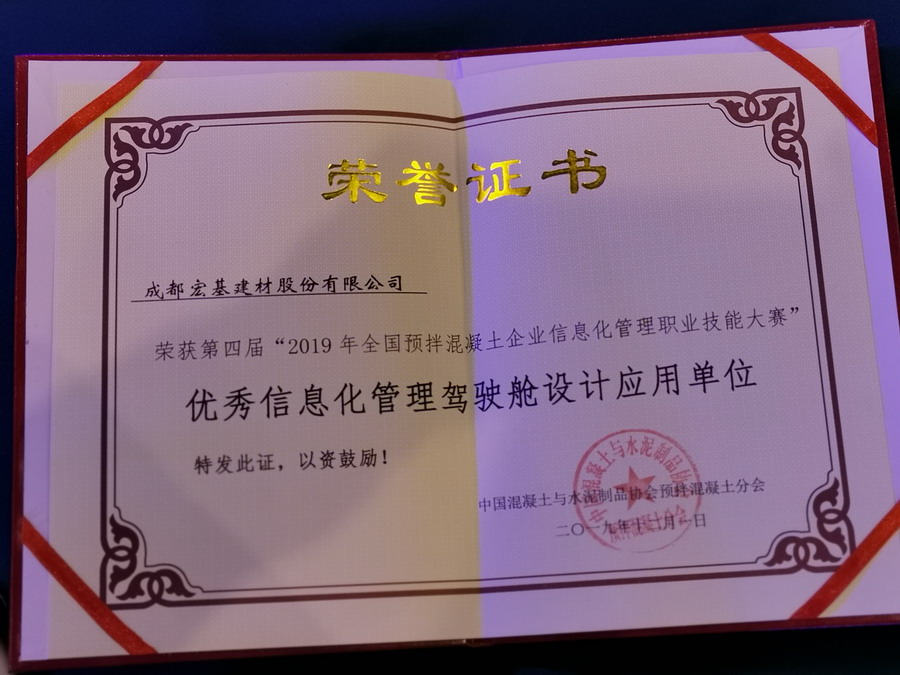本届大会举办了第四届全国预拌混凝土企业信息化管理职业技能大赛。我公司信息部在全国参赛队伍中,脱颖而出,成为四家优胜者之一。大会向四家优胜企业颁发了“优秀信息化管理驾驶舱设计应用单位”荣誉证书。本次参赛,是我公司首次参加信息化领域的竞赛。通过比赛,检验了水平,展示了实力,获奖给了我们更强的信心,鼓舞了我们的士气。高手过招,也让我们看到了差距。未来我们将更加致力于将传统业务与信息化技术、互联网深切结合,实现更优秀的经营绩效。