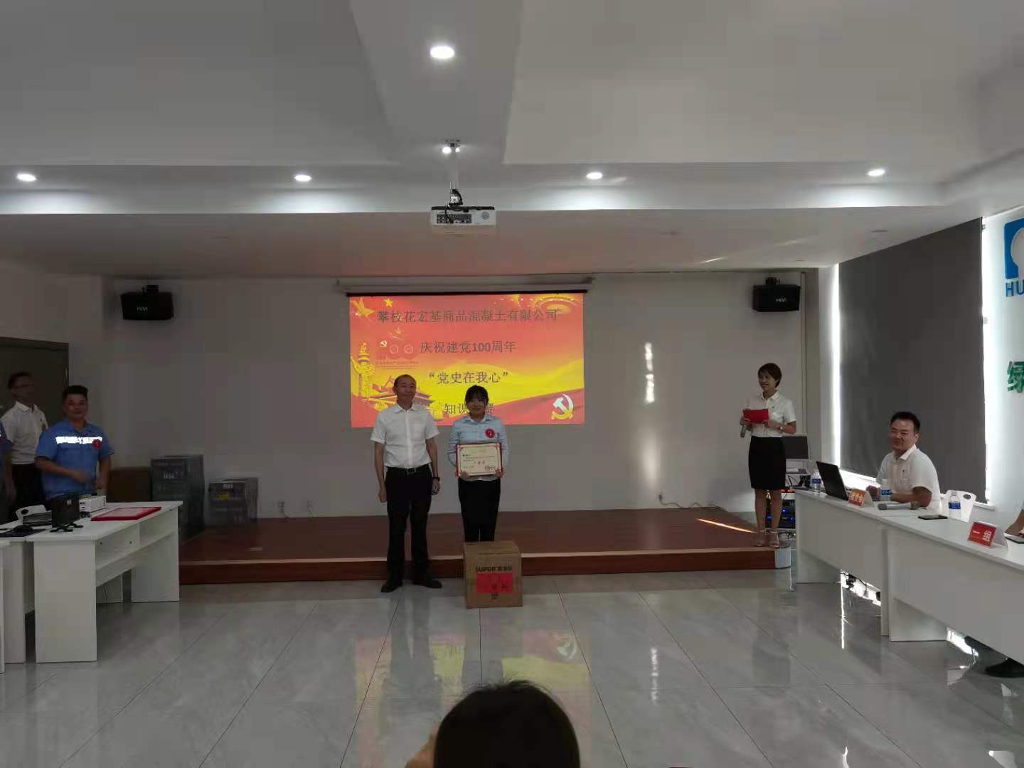 为庆祝中国共产党成立100周年,重温党的光辉历史,继承和发扬党的光荣传统,激发爱党爱国热情,2021年06月29日下午4点,攀枝花宏基商品混凝土有限公司党支部与工会联合组织举办了“党史在我心”党史知识竞赛。