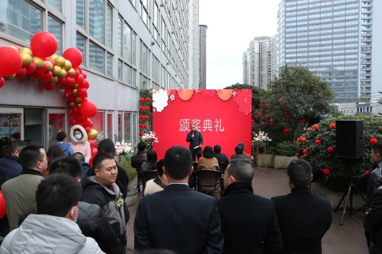 公司董事长兼总裁吴逸云先生新年致辞:过去的一年,宏基人团结一心,共同努力,克服了一道道难关,随着龙泉驿柏合镇“宏基绿色建材智造中心”、蓉西分公司重卡换电项目的建设,我们所有的努力都是为了让宏基将根扎得更深,待到春暖花开时,必将迎来枝繁叶茂。再次祝福大家,新年快乐!过去的一年,公司涌现出一批批优秀的管理团队和优秀员工,公司常务副总裁周世洪先生宣读了《2021度年优秀管理团队和优秀员工》,并对获奖者送上衷心的祝福。伴随着阵阵掌声,优秀团队、优秀员工陆续登台领奖致谢。