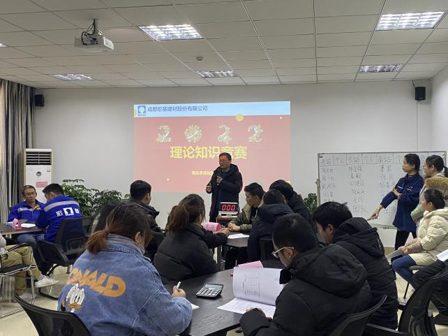 2月14日,成都宏基建材股份有限公司首届知识竞赛、配合比大赛圆满结束。本次竞赛以“以赛促学、以学促用”为主题,以提高技能水平为目标,这不仅是一次大比武大练兵,更是对试验队伍技能水平和综合素质的大检阅。本次竞赛在蓉西分公司举行,共分为理论竞赛和配合比大赛两个环节。旨在将专业理论知识与生产实践相结合,充分考察各参赛队员对配合比设计合理性、专业技能水平、团队协作等方面的综合能力。进入竞赛共有4组队伍,每组队伍由5-6人组成。莅临本次竞赛现场的领导:副总裁胡总、助理总裁曹总、副总工程师韩总,以及分公司负责人等。