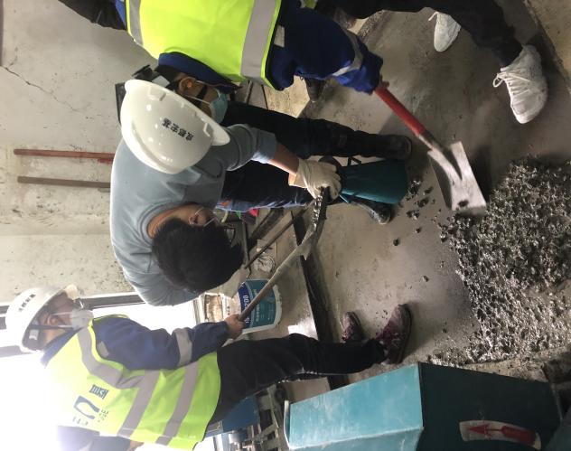 配合比竞赛期间,各组参赛人员在规定时间内分别对原材料选择、称量、测量数据处理、配合比调整、搅拌、性能测试等环节,通过观察与调整,搅拌出满足要求的混凝土。