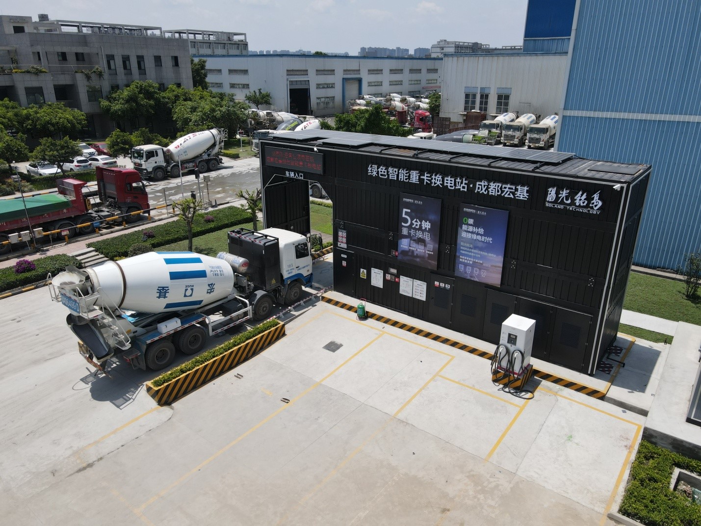 位于蓉西分公司内,西南地区首座,充满了科技感的综合能源重卡换电站吸引了各领导、专家的关注,他们详细询问并观摩了新能源搅拌车的换电过程。吴总向来宾介绍了这换电站和新能源搅拌车的建设运营情况,对来宾们各项运营数据的询问进行了解答。