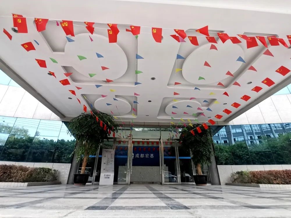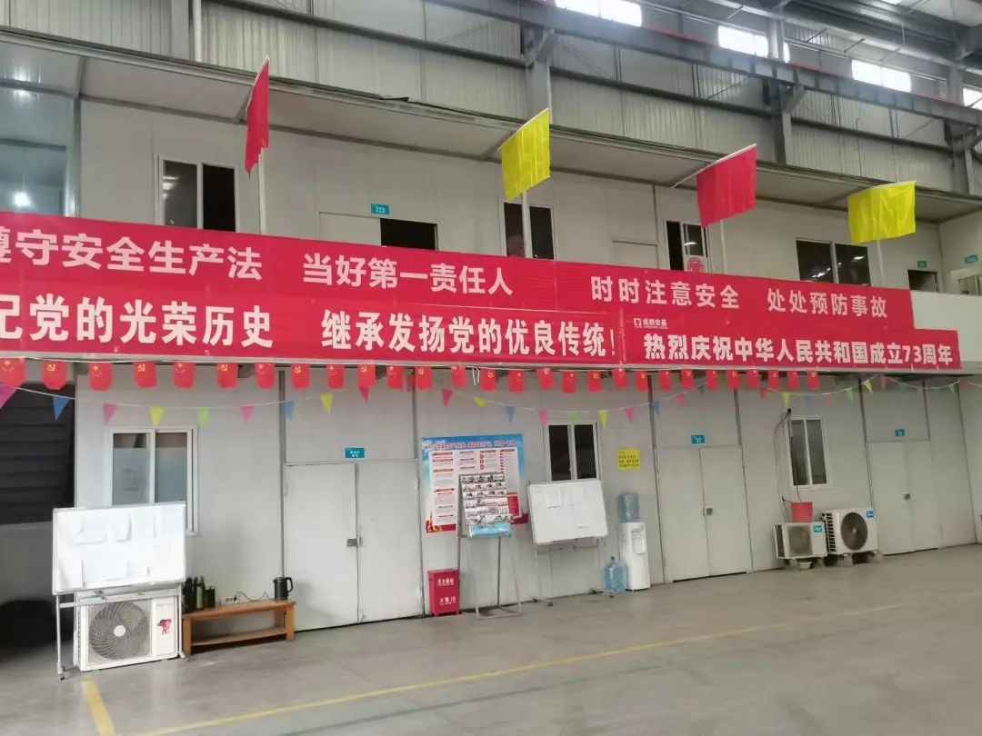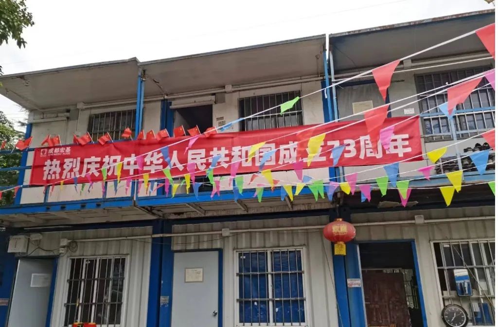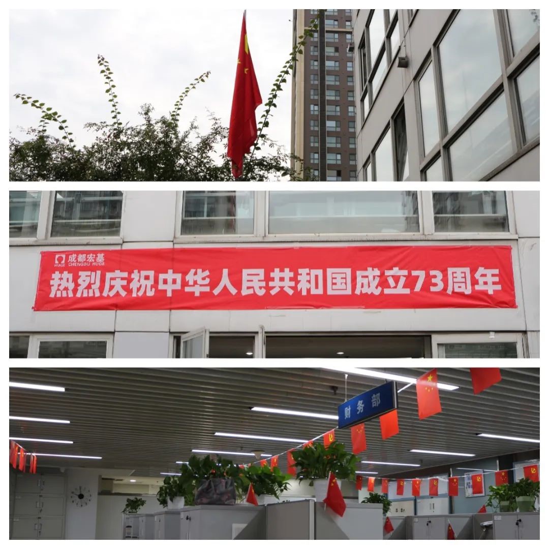 鲜艳的五星红旗、各办公区庆祝佳节的横幅更是为节日的到来增添喜庆氛围。