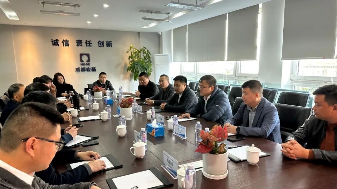 座谈会上,公司吴逸云董事长对玉磊集团的到访表示欢迎,并就公司发展历程、 业务布局、发展战略、成都混凝土行业现状进行介绍。唐耀祖总经理对成都宏基的发展历程及发展方向表示赞赏,对成都宏基的热情接待表示感谢,并介绍了玉磊集团的业务布局、未来战略规划、大同区域混凝土行业现状。随后与会双方就如何在国家经济转型、环保政策深入推进的时代命题实现破局,如何在市场容量不断缩减、行业产能严重过剩、同质化竞争激烈的行业现状下成功突围展开交流。双方均表示以“客户需求为导向”打造核心竞争力,通过质量管理、服务体系、运营机制及信息化建设、绿色化发展等方面的全面提升赋能业务发展才能在市场风险、政策风险愈发加剧的当下取得长足发展;双方希望以此次到访为契机,加强深入交流,实现共享机遇、共谋发展。