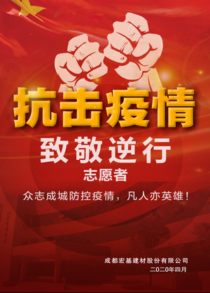 • 2020年年初,新冠肺炎疫情波及全球,各行各业均停工停产共同抗击病疫,成都宏基作为一家有社会责任担当的企业,大年初六接政府抗疫指挥部急需商砼建设医疗设施的通知后,公司克服诸多困难急招部分员工到岗复产全面保障了抗疫建设需求。随即公司又向成都市、区各级红十字会捐赠人民币50万元。