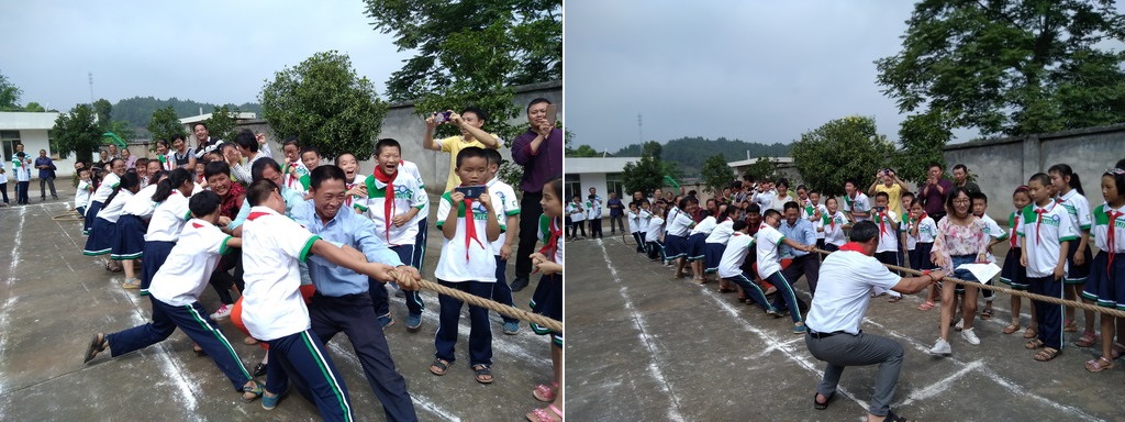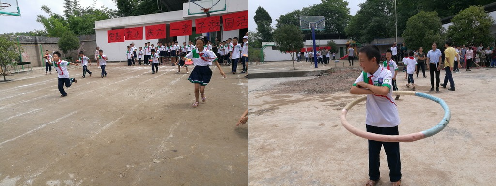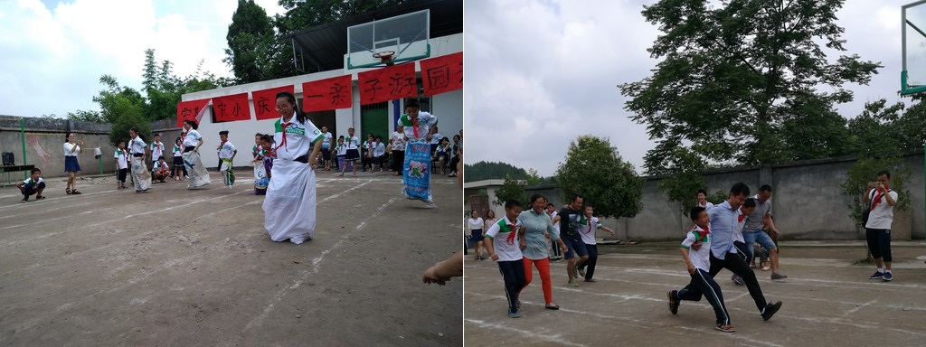 随着周校长宣布活动开始,精彩纷呈的亲子游园依次展开。本次活动名为亲子游园,目的是让更多的学生家长参与到游戏当中,让这乡村小学的许多留守儿童们在成长过程中也能有父母更多的陪伴。拔河、你比我猜、袋鼠跳、两人三足、端乒乓等集体赛最是精彩,需要家长全身心与孩子一起努力才能获得胜利。由于部分学生家长确实因为路程太远而不能到场,我们的三位志愿者便当起了临时爸爸,他们与同学们一起飞扬在赛场,让孩子们避免了不能参赛的遗憾,也让自己收获了快乐。竞技总会有输赢,优胜的同学充满喜悦,失败的同学满是后悔,这是孩子最真实的情感表达,但也能激励他们后来更加奋发图强。