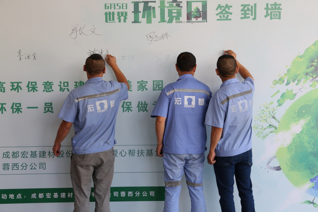 2018年6年5日,由成都宏基爱心帮扶基金会组织的“世界环境日”环保启动仪式在蓉西分公司顺利举行,活动以“美丽宏基我是行动者”为主题,目的在于传递“绿色环保,从我做起”的环保精神。参与本次活动的有爱心帮扶基金会副理事长花成、监事肖斌武,公司副总裁胡亮、技术总监韩建国、各单位负责人、各分公司、泵送队代表队及志愿者代表队。
