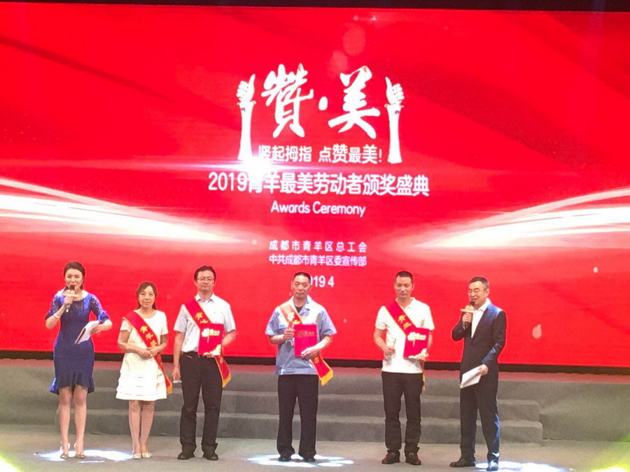 4月25日,青羊最美劳动者颁奖盛典在青羊区东胜街40号少城视井文创产业园进行。我司公司领导,职工代表共计12人参加了此次盛典,盛典从“平而不凡”章节拉开序幕,从主持人宣读的颁奖词中我们了解到,他是一名平凡的环卫工人,寒冬腊月天,面对陌生的落水者他奋不顾身跳进冰冷的水中将其救上岸……;“咫尺匠心”章节的VCR中出现我司蓉西分公司修理工钟盛均平凡工作的点点滴滴,当主持人问到他荣获此奖最想说点什么吗?这位铁汉子红了眼眶哽咽的说:除了感谢公司领导的培养、同事的关心外,更想感谢家人的支持,是爱人和女儿的理解与陪伴,让自己坚定地在基层的工作岗位兢兢业业走过了几十年。