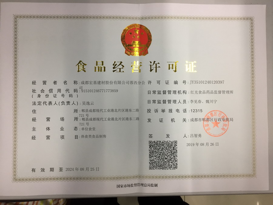 2019年8月26日,蓉西分公司员工食堂经郫都区食药监局检查验收合格,并取得郫都区行政审批局颁发《食品经营许可证》。该证的获得标志着我公司员工食堂标准化管理迈上了一个新台阶,也为我公司各分、子公司员工食堂标准化建设树立了标杆。