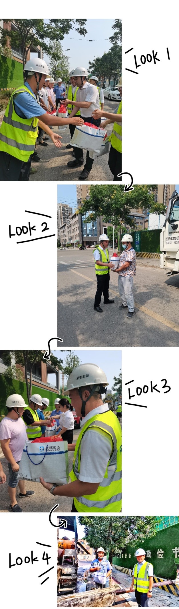 炎热持续,慰问继续。蓉东慰问组成员、蓉西慰问组成员、工会主席,副主席走访慰问我司在建施工一线员工。