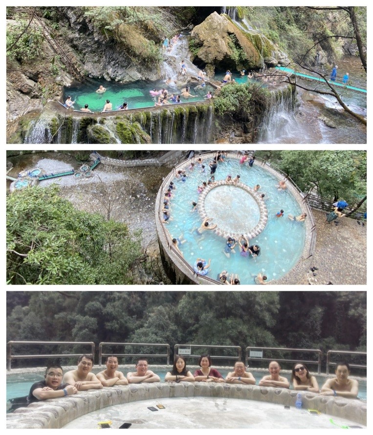 在春日阳光沐浴下,在山间清风的环绕中,在潺潺溪水奔流间,享受着纯天然温泉的滋养,在山间呼吸着清新的空气,泡着温泉,消除了一身的疲惫。
