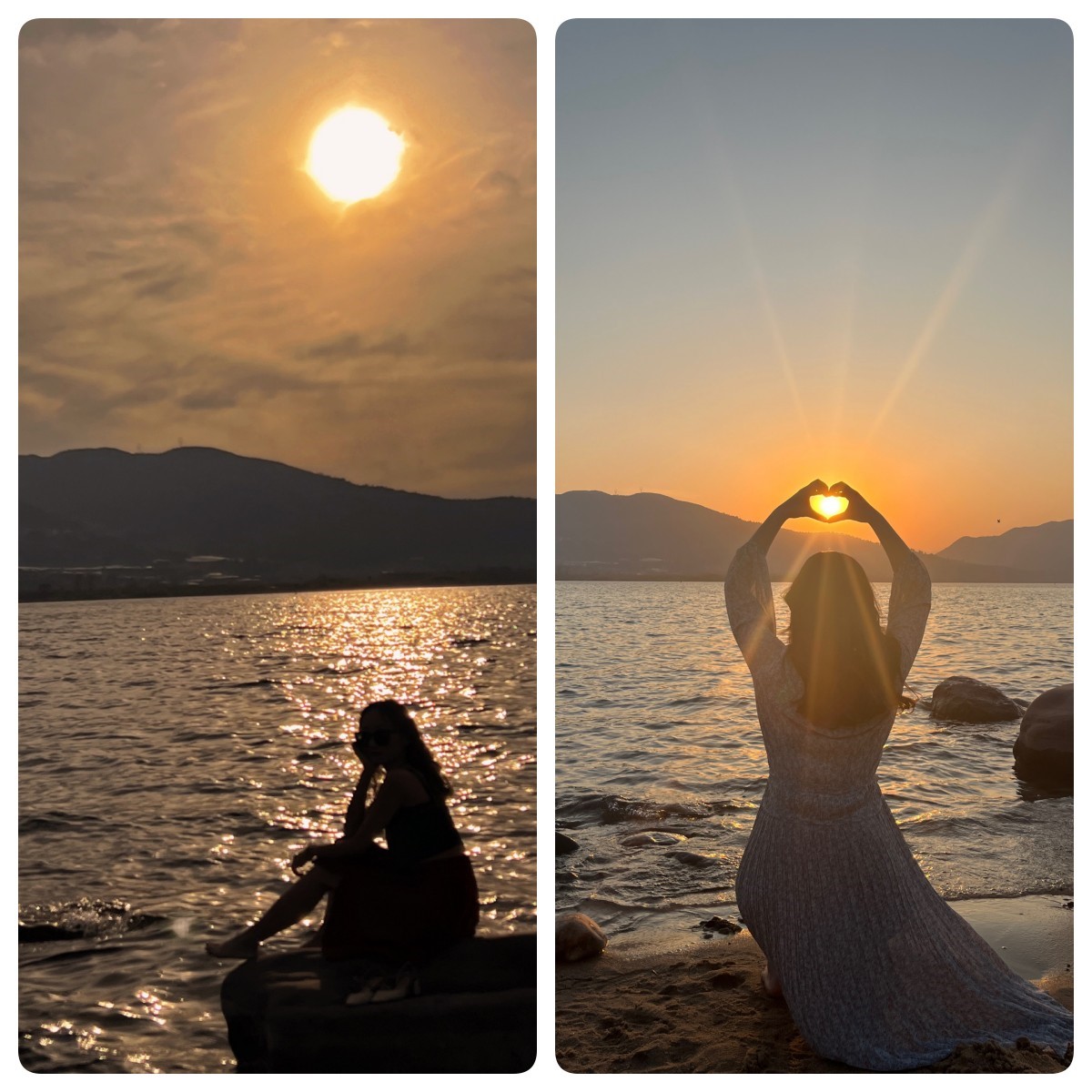 金鳞沙滩虽然不大,却站满了来来往往的游客,如果你想拍一张好看又充满氛围感的照片,那不妨在这里等一场日落。等太阳一点点西沉直至消失在山间,等橙色的光芒逐渐铺满天空和海面,等满目的波光粼粼和独属于你的一场浪漫。
