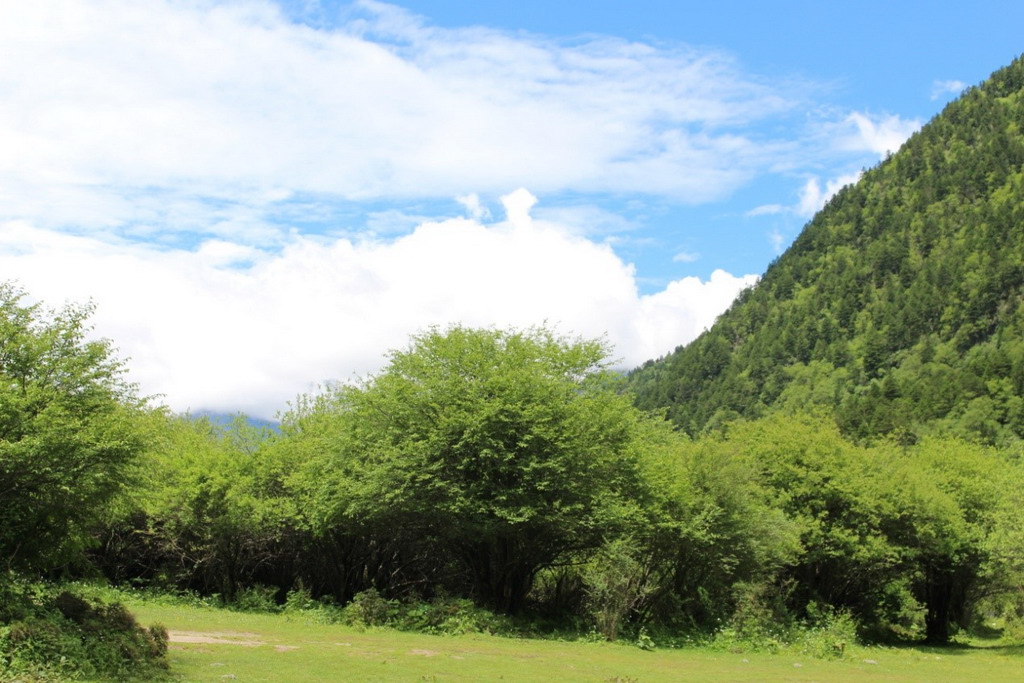 沿着木格措一路步行,一路上的风景美不胜收,阳光也缓慢的露出了他的身影,在蓝天白云的映衬下,风景显得格外迷人,让人忘了城市里的烦恼,得到了全身心的放松。每个人也都开启了疯狂拍照模式。